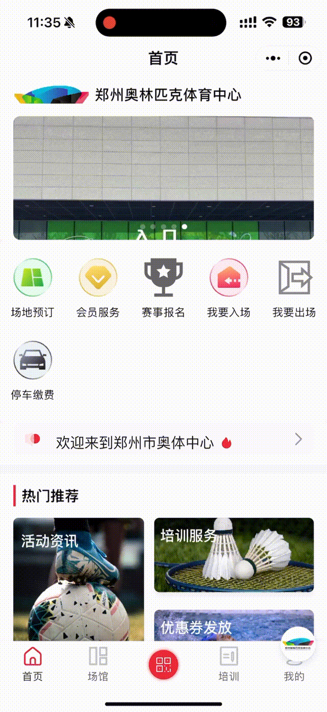 鄭州奧體中心小程序推出全民健身暢游券