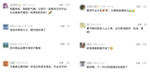 “讓我們一起期待它的開(kāi)業(yè),為這座城市增添一抹亮麗的色彩!”“感覺(jué)非常高大上,期待值拉滿(mǎn)了”“期待開(kāi)業(yè)大吉,為管城發(fā)展助力”從這些稿件中的評(píng)論區(qū),我們能看出市民對(duì)“亳都·新象”的期待以及鄭州文商旅融合發(fā)展的信心。